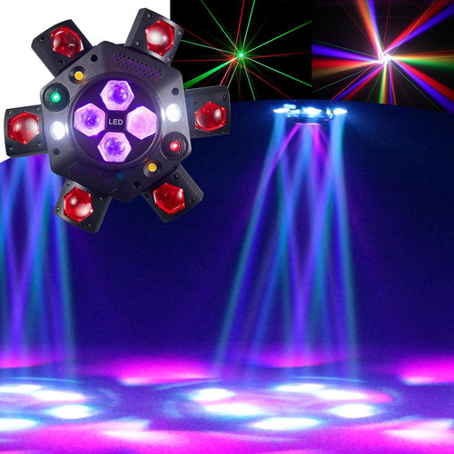 Flashback Events 6-Arm 150W RGBW Bee-Eye Spider DJ Moving Head Light – LED Stage Lighting with DMX512, Sound Activated Beam Wash, Strobe & Starry...
