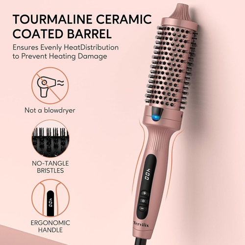 Terviiix Thermal Brush Get Voluminous Style, Quick Heating Hot Brush, Ceramic Tourmaline Ionic Heated Curling Iron, Digital Display 9 Temperatures Curling...